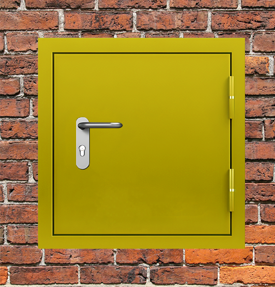 Специализированное решение люк металлический желтый с блестящей ручкой для комплексного обеспечения требований пожарной безопасности.